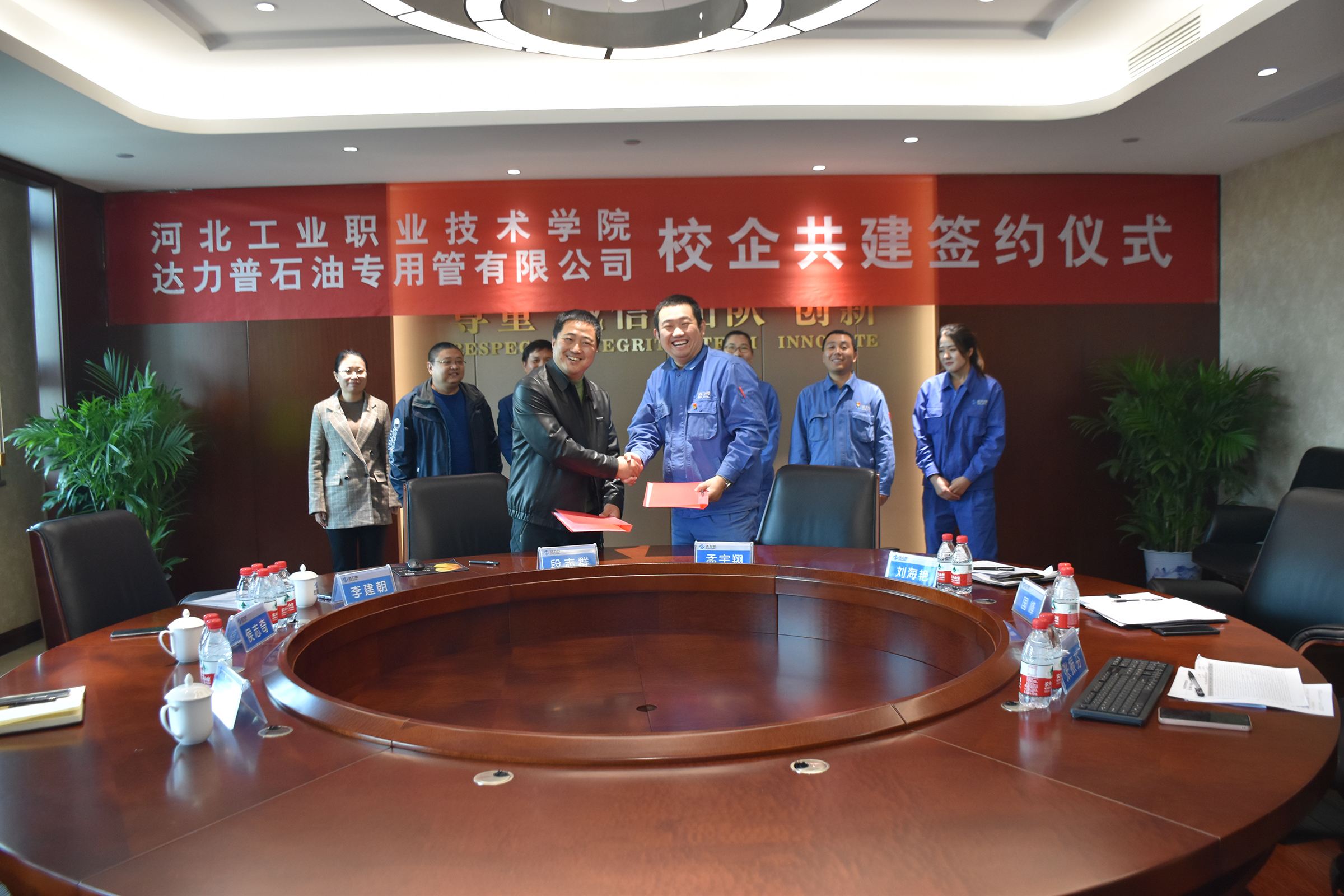 11月10日,達力普公司與河北工業職業技術學院就共建“雙師工作站”、“共建黨支部”舉行簽約儀式。河北工業職業技術學院智能製造學院院長李建朝、書記段志群、副書記侯志奇、博士團隊帶頭人王麗佳蒞臨公司。