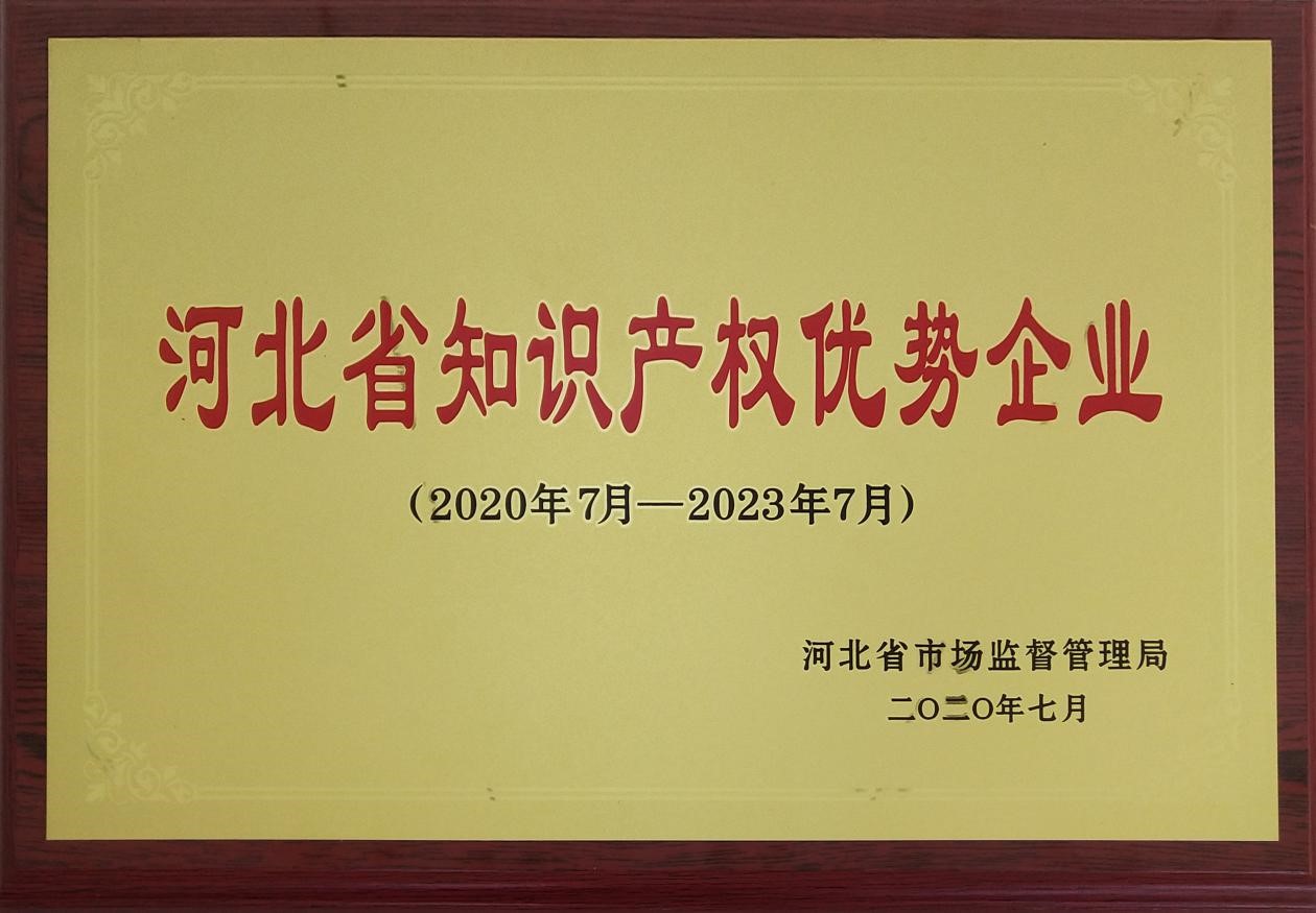 近日,公司獲評“2020年度河北省知識產權優勢企業”榮譽。